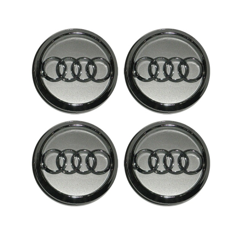 AUDI ΚΟΥΜΠΩΤΕΣ ΤΑΠΕΣ ΚΕΝΤΡΟΥ ΖΑΝΤΑΣ ΓΚΡΙ/ΧΡΩΜΙΟ (ΕΣΩΤΕΡ. 56 mm ΚΑΙ ΕΞΩΤΕΡ. 59 mm) - 4 ΤΕΜ.
