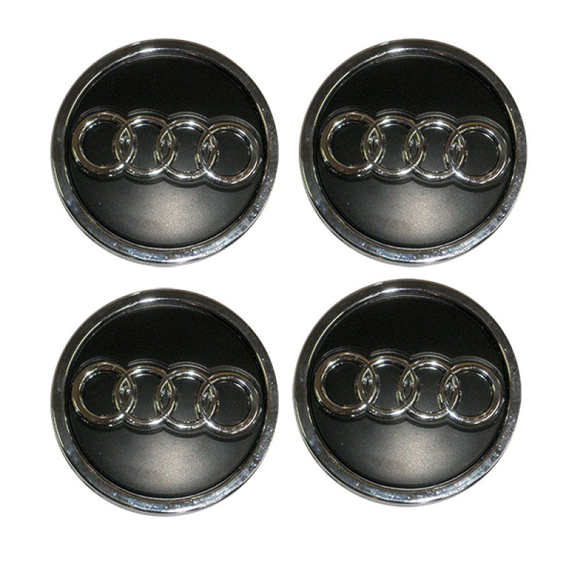 AUDI ΚΟΥΜΠΩΤΕΣ ΤΑΠΕΣ ΚΕΝΤΡΟΥ ΖΑΝΤΑΣ ΜΑΥΡΟ/ΧΡΩΜΙΟ (ΕΣΩΤΕΡ. 60 mm ΚΑΙ ΕΞΩΤΕΡ. 69 mm) - 4 ΤΕΜ.