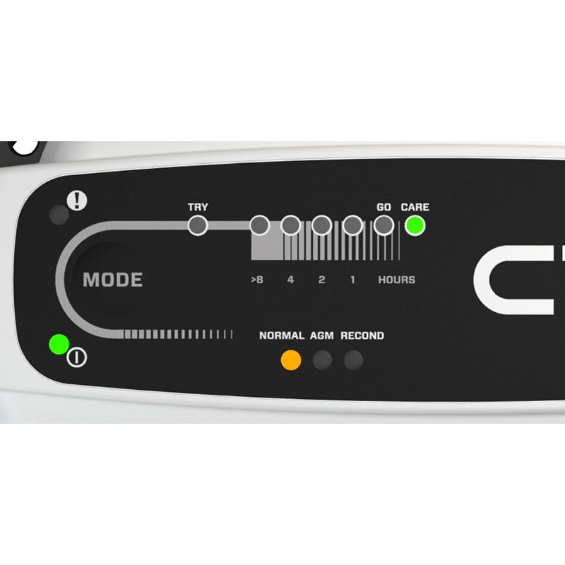 Ο πρωτοποριακός φορτιστής και συντηρητής μπαταριών CT5 TIME TO GO είναι ο πρώτος στο κόσμο που απαντά στην ερώτηση «Πότε θα φορτιστεί πλήρως η μπαταρία μου»; Αυτό σημαίνει ότι μπορείτε να σχεδιάσετε την ημέρα σας γύρω από την φόρτιση της μπαταρίας σας, επειδή το CT5 TIME TO GO σας δίνει ακριβή πρόβλεψη του εναπομένοντος χρόνου φόρτισης σε ώρες. Όχι μόνο αυτό, θα σας πει επίσης πότε μπορείτε να προσπαθήσετε με ασφάλεια να ξεκινήσετε το όχημά σας πριν να φορτιστεί πλήρως η μπαταρία. Το CT5 TIME TO GO χρησιμοποιεί προηγμένη τεχνολογία για να σας δώσει τρία προγράμματα φόρτισης και συντήρησης - Normal, AGM και Recond. Είναι εύκολο στη χρήση και πλήρως αυτόματη, έτσι ώστε να μπορεί να συνδεθεί απευθείας με την μπαταρία επ 'αόριστον, αν χρειαστεί, και δεν θα επιβαρυνθεί υπερβολικά ή με χαμηλή φόρτιση.